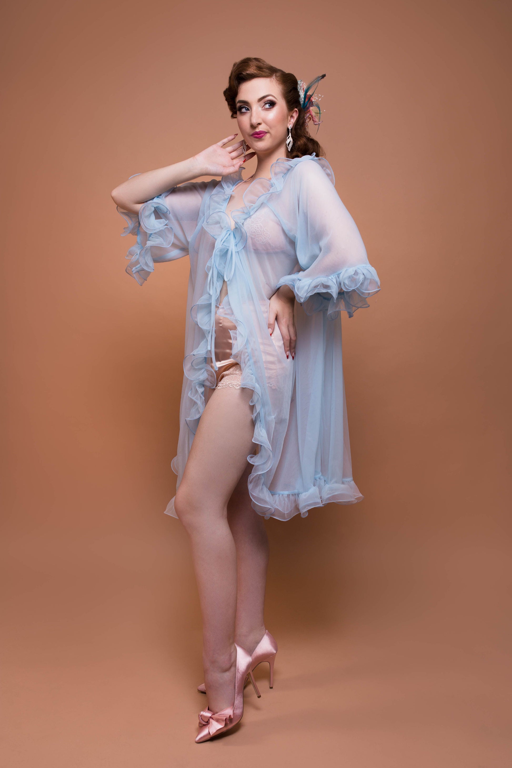 This cute little 1950’s inspired pin-up peignoir is perfect for photo shoots, backstage glamour, and just generally look fab in the comfort of your own home.