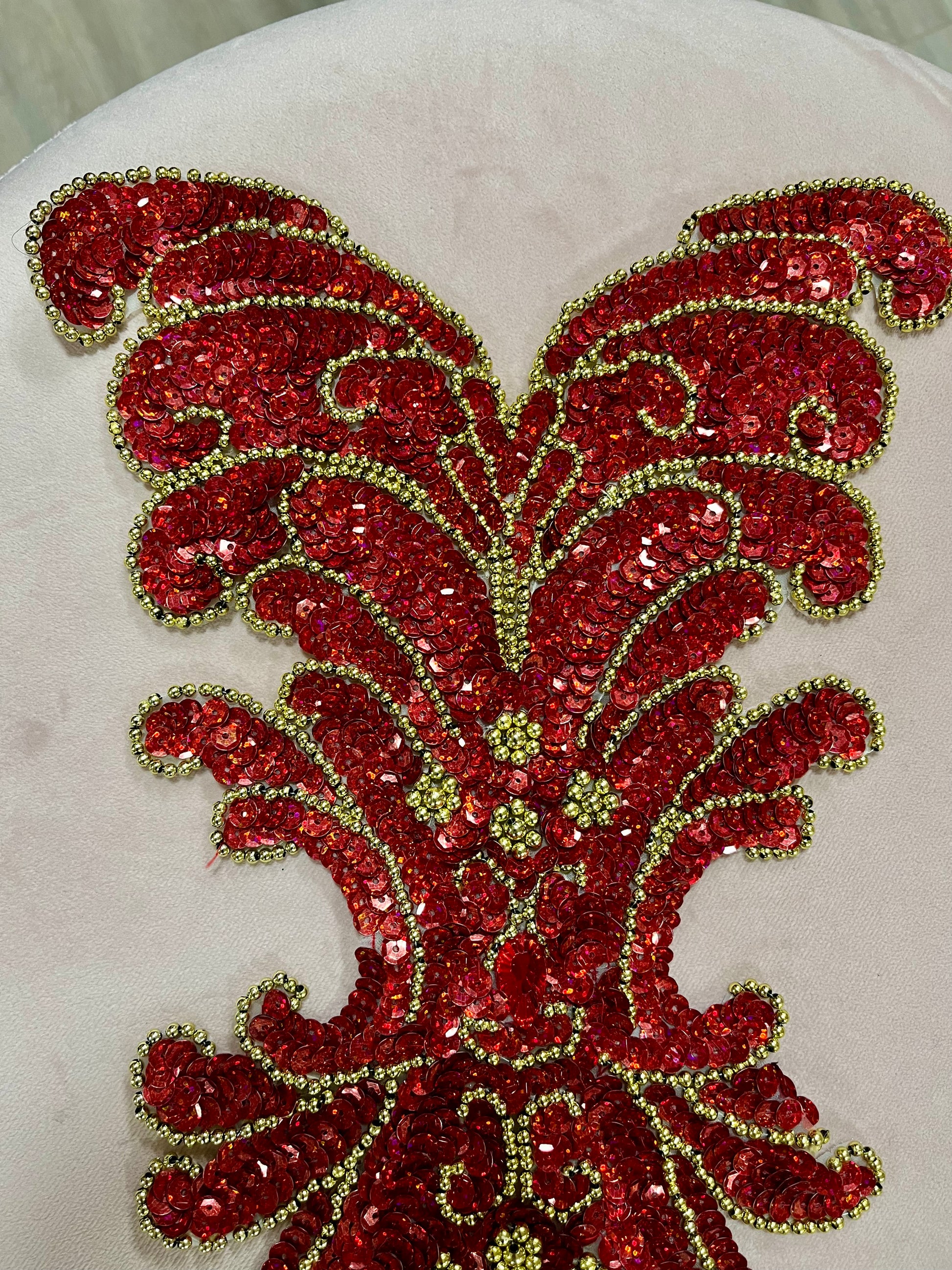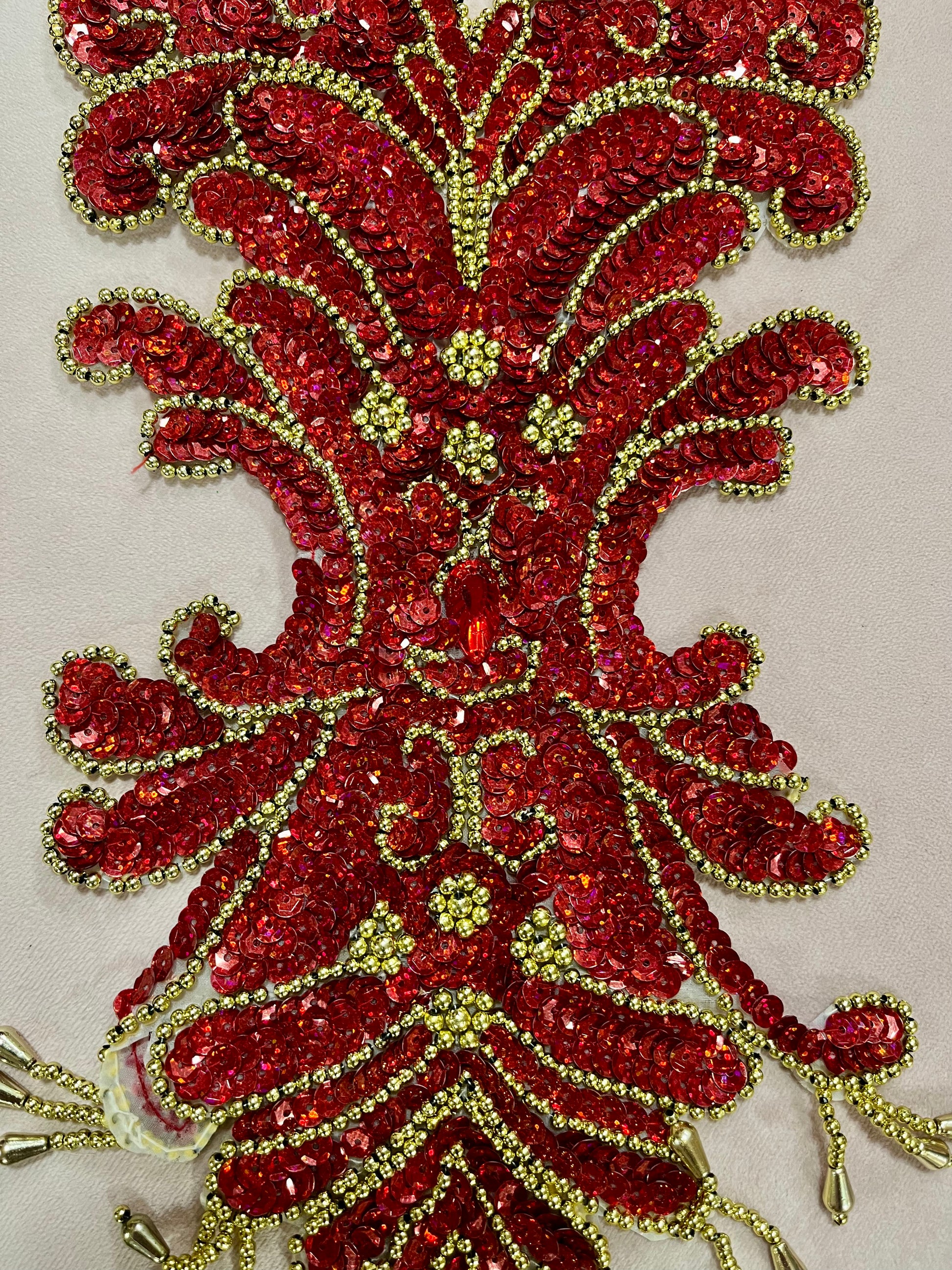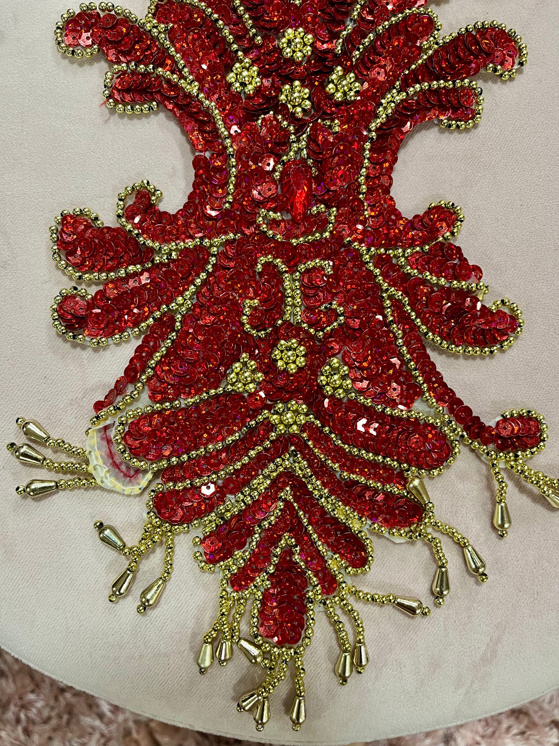 Large Red Sequin and Gold Beaded Appliqué
